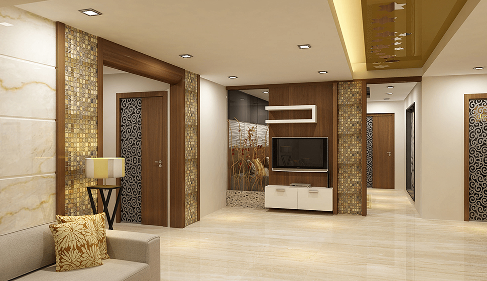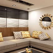 Midas Touch! Those are the words that perfectly describe this house. The design for this house had to have a high quotient of luxury & richness and that’s how the end product has turned out to be. Golden accents have been interestingly used in the form of shimmering mosaics in wall panels, tinted mirror in ceiling & decorative mirror which accentuates the luxurious feel of the spaces.