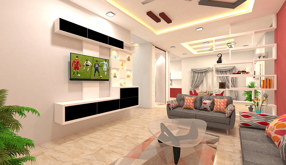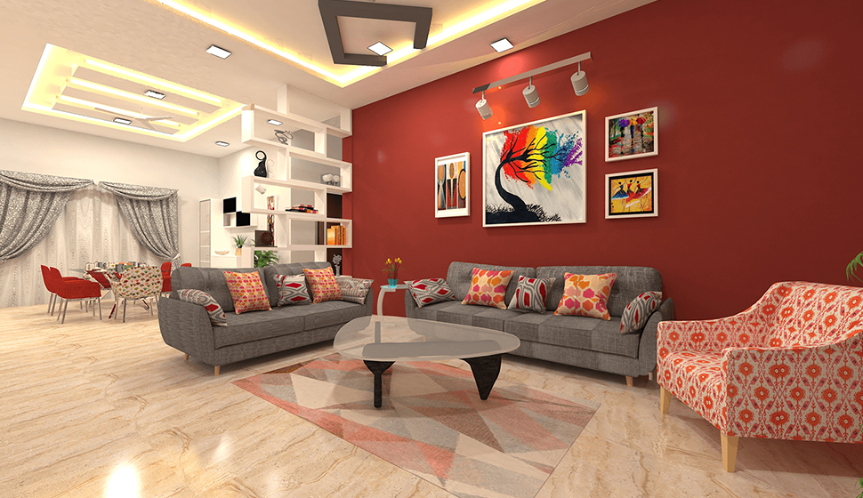 Reds & Pink rule this house! The client here wanted a very modern look for their new home & and red & pink were their favorites when it came to colour. You can see the public & semi public spaces doused in shades of red & pink. For those who feel that these are very bright colours, it a very good example how we can experiment with bright colours in the modern style of design that brings richness to the spaces.